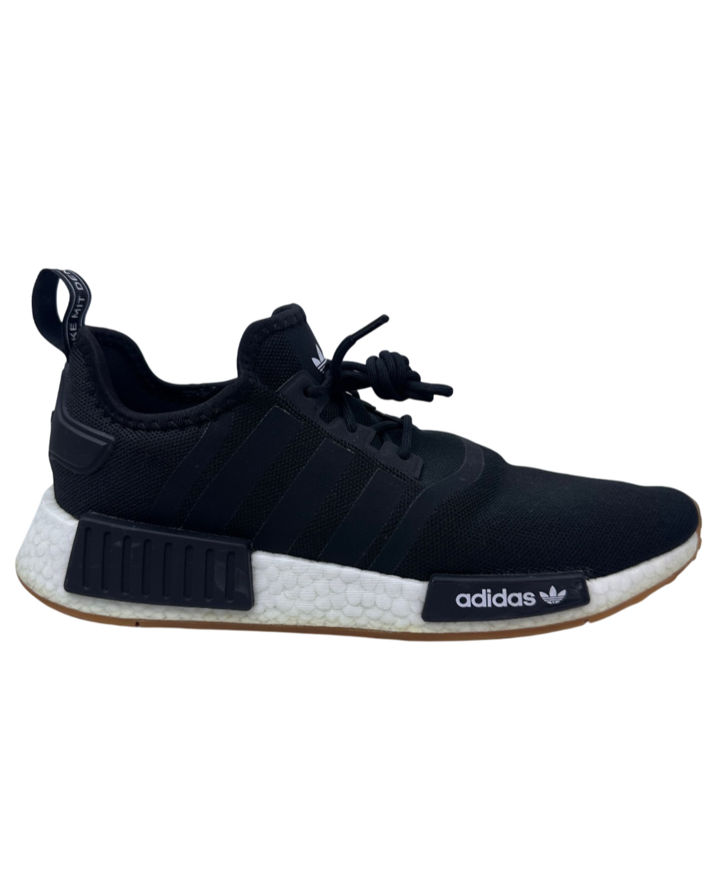 The shoe's signature design includes black EVA midsole plugs set against the full-length, energy-returning white Boost midsole. A classic gum rubber outsole provides excellent traction and adds a timeless style element. This pair is finished with the NMD's distinctive heel pull tab.